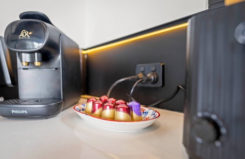 All amenities have been thought through with practical style and ease. The dishwasher and refrigerator are inbuilt behind kitchen cupboards. The contemporary espresso pod machine on the kitchen bench blends in nicely with the design aesthetic and also makes very good coffee!