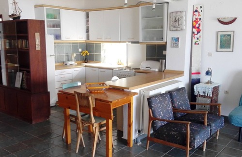 A calm and relaxed holiday in a 20 year old apartment, 10 meters from the beach, equipped with all modern comforts, located on a peaceful countryside at the most quiet location of the breathtaking turquoise beach of Toroni: nothing interferes the view of the fine golden sandy beach and the crystal clear waters in the front and of the green wooded hills in the back. Thanks to its bio-climatic construction, it stays cool even on the hottest days of summer.