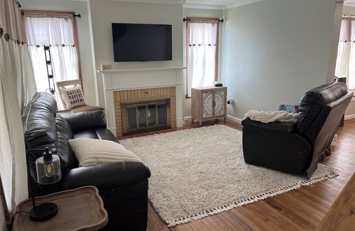 Located in Atchison, enjoy what this 4-bedroom house has to offer. This lovely property features 3 queen beds, 1 full bed, with 1 sofa bed in the game room, perfect for a serene getaway. With amenities like WiFi, porch swings, and a fire ring, guests can relax and unwind. The bathroom includes a shower and a hair dryer for added convenience. Experience a wonderful stay in this charming home - feel free to reach out to us during your stay, we're happy to suggest local spots to check out.