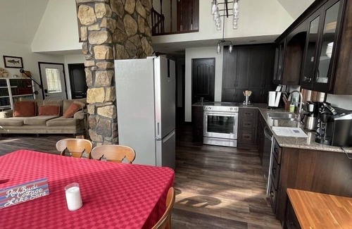Our 3 bedroom, 2 bath cottage sleeps ONLY 6 adults (per local regulations) and a "reasonable amount" of children. We have 3 "very comfortable" [Guest reviews] king size beds and a couple of wonderful wide sleeping couches in front of the fireplace. We have sleeping bags for children and a crib for babies. Our kitchen and downstairs were completely remodeled in early 2021. We have a Keurig Coffemaker, a French coffee press, a dishwasher, and all new dishes and pots and pans. Our washer and dryer and two-car garage make this a perfect spot for an extended stay. A canoe and 5 kayaks are available for the use of our guests.