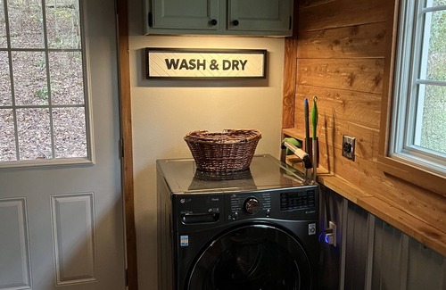 Stay comfortably in Ironton at this cozy cabin. The loft bedroom features a queen bed and the charming living room with a pull out futon, perfect for unwinding after a day of exploring the local state parks nearby. Grab a blanket and snuggle up with a movie or enjoy the warmth of the outdoor firepit under the glow of string lights! With amenities like a washing machine, AC, and heating, guests can relax and feel right at home. Bring your family and unplug at this pet-friendly cabin.