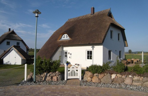 On the southern edge and right on the backwaters of Zinnowitz a tasteful settlement of thatched cottages is newly created in 2011. The House Ilsebill is 135 square meters of living space, a holiday oasis emerged that offers up to 8 people can fully enjoy a unique and relaxing holiday. On the terrace or alternatively in the spacious conservatory you start the day with a leisurely breakfast in the morning sun and enjoying that spectacle right before your eyes. After an eventful day, look forward to the return and relax in the sauna, at the fireplace or a barbecue in the evening sun in the circle of your loved ones. In the evening you decide on a DVD or a game of bowling on the Wii or classically in a game of chess.