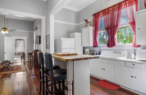 Sitting in the heart of downtown New Iberia, this beautiful, historic Victorian home was built in 1897. It has three bedrooms, and will easily sleep eight people with two queen beds, two twin beds, and a queen sized sleeper sofa. It also has a full kitchen, a separate dining area with seating for six, and music room/parlor. We invite you to enjoy the sounds of New Iberia while enjoying coffee on the front porch or playing the antique piano in the music room.