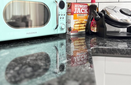 The heart of this abode beats in the Chef's Kitchen in a world of possibilities. Make drip or Keurig pod coffee in the coffee bar or get fancy with the French press (filters & complimentary Keurig pod included for Keurig machine) High quality organic spices are at your fingertips. High powered dishwasher with complimentary dishwashing detergent included for an easy stay.