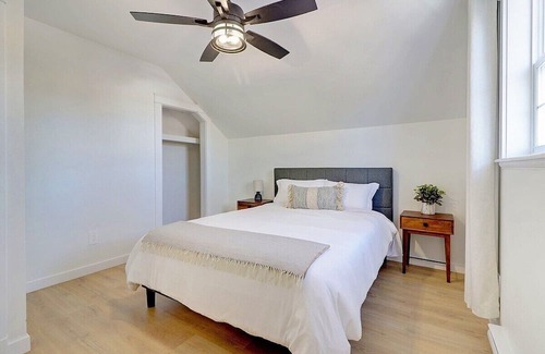 Newly updated open-concept space that houses a skylight, full bath, and two bedrooms. The light walls flow throughout while this modern kitchen and light vinyl plank flooring make this cozy space. Full laundry has been installed and ready for your convenience.