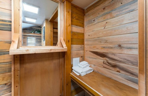 Indulge in the thoughtful design of our quaint tiny houses, where every detail is crafted to enhance your stay. Mt. McConnel features a LOFTED queen size bed and a grounded twin bed. Unwind in the rejuvenating bathroom featuring a stall shower after a thrilling day of outdoor escapades. Our well-appointed kitchenettes include everything you need, a sink, a microwave and mini refrigerator, ensuring your comfort is never compromised. Gather around the inviting bar-top dining area for delightful meals and memorable moments.
