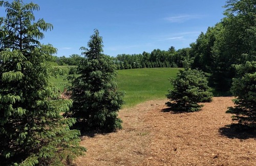 Here is your chance to try out a new wood beamed 520 sf 'not too tiny' house. Nestled on 20 special acres of nature you can roam to your heart's content. Plug in your RV for more beds if you have them. Wooded trails take you by Snowshoe Creek and to the lily pads and wild flowers on Little Wood Lake. Over the bridge and long dock are your included canoe, kayak and paddle boat to get around the lake. You'll find crappies, sunnies, northern pike and many largemouth bass. Lots of wildlife on our surrounding 20 acres. Inside you'll enjoy the super quiet air conditioning or heated comfort. Brazilian pecan and bamboo flooring. 2 TVs. Great new high-end stove and fridge with ice maker. Use the few acres of field for 4 wheeling or snowmobiling. Head to your pick of 3 cute towns each just 8 miles away or get your wine, sandwich, cheeses and ice cream at the Alpha Dairy and Bistro just 3 miles away. All towns have golf courses and restaurants. There is a terrific miniature golf course, upscale dining, antiquing, a multiplex theater and a beach in Siren. A home cooking restaurant and old fashioned bakery in Frederic. Enjoy many events at the lakeside park in Grantsburg. Visit a local mini-farm. When you are tired from all this action just come home to your fireplace and just relax. We now have Internet and WIFI for your cell phone.