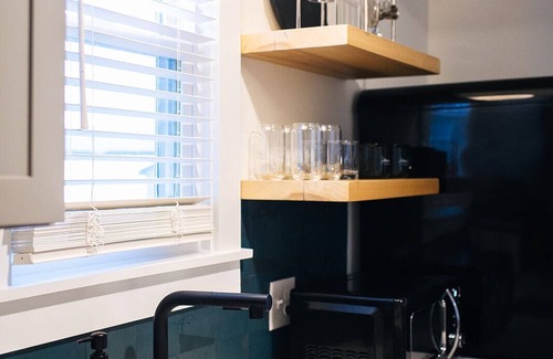 Mane & Co Motel and Tiny Homes is located just minutes from downtown, while providing an easy escape to the interstate, main highways, shopping, eating, and parks. These home are tastefully designed, simplistic, cozy, and thoughtful. The fully stocked kitchens provide a fridge/freezer, stove, microwave and toaster for eating in along with everything you need for your morning cup of coffee. Your room is furnished with a queen-sized bed, a loft with 2 twin beds accessible by ladder and a small dining area for 2 and a smart TV.