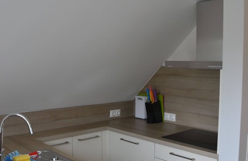The house is almost completely equipped (except bedroom DG) with energy-saving underfloor heating and the lower apartment offers a fireplace for our guests. Each room has an electric roller shutter. A parking space is available for each apartment directly in front of the house. If you need more than one parking space, we still have several parking spaces nearby. Bikes can be brought along.