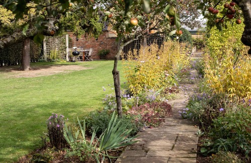 Surrounded by farmland, the garden is your private escape on sunny days with a table and chairs seating 10. The enclosed lawn has central planted beds adding a pop of colour to this space. Children and the dogs can play here and it is a lovely area to spread a blanket for a picnic after popping to the farm shop next door.