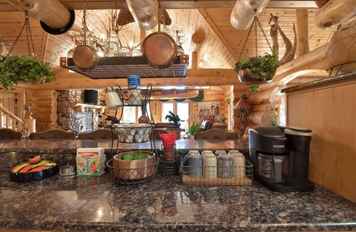 Take your breath away with this enchanting custom log home! Unparalleled craftsmanship is crafted into every corner of the construction, created through hand-scribed Scandinavian Full Scribe Process pieces snuggled together on two acres of lush tree property and offering a stunning view to soak in. Treat yourself with 4347 sq ft of four bedrooms, three bathrooms plus an office/den for extra guests or personal hideaways - all hosted by cozy knotty hickory cabinets & stainless steel appliances like Jenn air Gas Range w/ Electric Griddle , Double Ovens & Vented Hood Boch Dishwasher alongside Slab Granite Counter Tops. Feel kissed by nature as you adventure dine among natural antler chandeliers accompanied local wildlife found throughout the living space when not dining at formal dinning room or eat-in kitchen area designed just right for everyone's enjoyment!