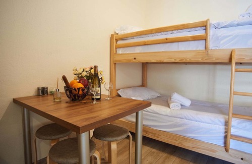 Hotel offers family sutes Max for 4 persons. Each suite has own bathroom and small kitchenette. Rooms are equipped all necessary things and are very comfortable. Guests can order homemade food as well.