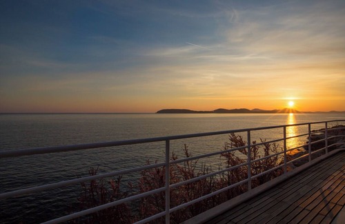The secluded seaside villa at the coast offers a dream holiday in a peaceful and private place known for its natural beauty, spectacular panoramic sea views, and sunsets. The villa is at the stone-walled property surrounded by terraced gardens of aromatic Mediterranean vegetation, and a private swimming pool overlooking the sea only a few steps above a private beach, a rocky seafront tamed by a spacious pier - the perfect spot to relax and enjoy Dubrovnik’s sunny and warm weather.