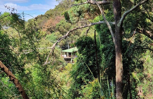 Cedar treehouse overlooking the Hawkesbury River just one hour from Sydney, no cars, just birdsong and the breeze. Decorated with interesting Art. Here you can relax on the deck, enjoy a BBQ or cook in the fully equipped kitchen. Fishing, kayaking, bush walking etc is just a few steps from the front door.