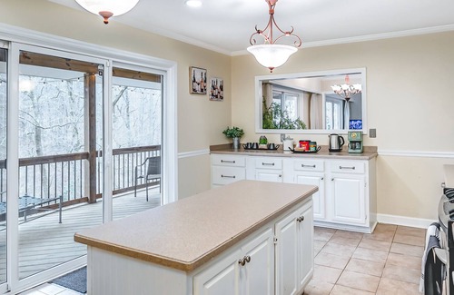 This wonderful home sits on 2 wooded acres with a private pond and bridge! Whether you're with family or friends, at Treetops, you'll find everything you need and more!