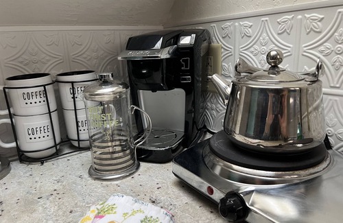 All bedding and towels are provided (please bring your own beach towels) as well as cleaning supplies, paper products, and starter supplies of coffee and plenty of creamer and teas. Please note that the apartment offers a kitchenette with plenty of amenities to prepare some light meals. Included are a mini fridge/freezer (this is fairly good sized and holds much more than your standard hotel mini fridge), a Keurig coffee maker, hot plate, microwave, toaster, countertop oven and all the basic kitchen necessities including dishes, glassware, cookware, tea kettle and utensils. Most items are on the smaller side to account for our cute kitchenette! This is probably not the place to cook a huge very involved meal, but we've had plenty of guests comment that it suited their needs perfectly, even longer term guests. There is not a dishwasher or disposal, but a drying rack, kitchen gloves and washing soap and sponges are provided. There is no laundry access, but there is a laundromat on the corner a 1-minute drive away.