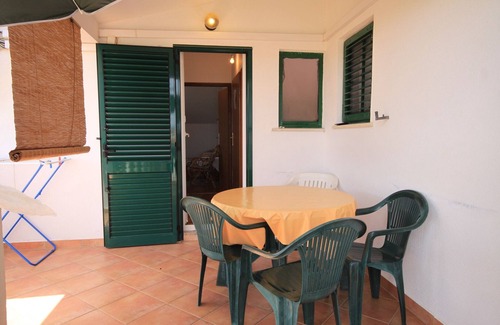 Apartment can accommodate 5 guests. Beds are situated in 2 sleeping rooms, but also in the dining room, within 45m2. Guests can use a private terrace to enjoy the warm summer evenings. The apartment offers the sea view. Food can be prepared using barbecue which is shared with other guests too. This accommodation unit welcomes pets at an additional charge.