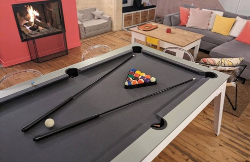 Located in Lormont, the holiday home Maison Bordelaise Typique 1850 has everything you need for a comfortable holiday. The 2-storey property consists of a living room, a well-equipped kitchen, 4 bedrooms and 3 bathrooms as well as an additional toilet and can therefore accommodate 8 people. Additional amenities include high-speed Wi-Fi (suitable for video calls) with a dedicated workspace for home office, a smart TV with streaming services, air conditioning, a fan, a washing machine, a dryer as well as children's books and toys. On top of that, a private gym, a pool table and gym equipment are also provided for your enjoyment. A baby cot and a high chair are also available.