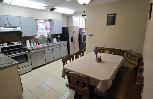 This unique property consists of two spacious fully equipped houses that share a quadruple driveway for plenty of off street parking. Located in a quiet cul-de-sac with a total of 10 bedrooms, 4.5 baths 2 complete kitchens and 2 front load laundry centers it can comfortably accommodate up to 20.