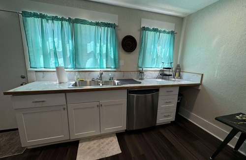 This particular unit is Unit 5 with parking just down the walkway from the unit so no stairs. The Unit itself is a 2 bedroom, 1 bathroom unit with a king bed in the main room and a full size bed in the hall bedroom. A cot is available for an additional guest. The kitchen is large with all your cooking needs with a large fridge/freezer. The bathroom is also spacious with a shower in it. These units are updated but have managed to keep its 1900s charm.