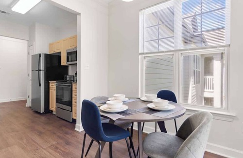 Stay in style in the eclectic city. This classy 902-square-foot (~84-square-meters) 2-bedroom apartment features 1 King Bed & 2 Plush Full Beds for your comfort, Lightning Fast Wifi, a Height Adjustable Standing Desk, a Fully Equipped Kitchen, and other Lux Amenities—specially designed for your longer length stays! Step out to a lively neighborhood, close to restaurants, cafés, bars, and shops!
