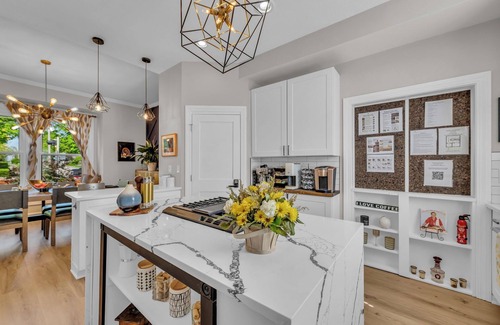 Fully stocked, oversized kitchen with quartz countertops & new appliances (just bring the food).