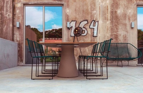 The impressive living spaces make this one-bedroom accommodation in Porto a unique option. The open plan lounge leads to a contemporary kitchen where any cook would feel at home whipping up wondrous meals to be served on the outdoor dining area.
