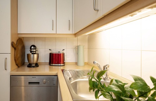 Prepare a home-cooked meal in the kitchen, complete with an oven, a stovetop, and a refrigerator, as well as a coffee maker and a toaster. And there's a washing machine, so you can even pack a bit lighter. Other amenities include an ironing board and heating.