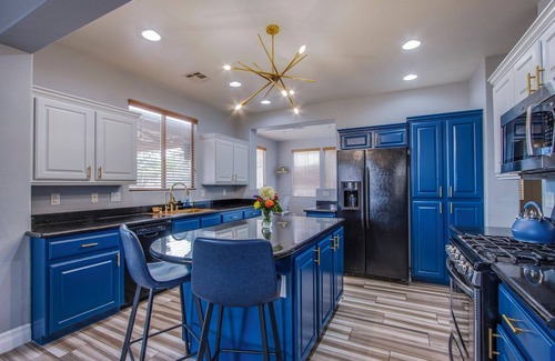 During your trip to our property, you'll enjoy the stylish blue and gold décor compliments of recent renovations, comfortable hybrid and foam bedding, and plenty of lounge space in the living room in front of the 75" UHD TV. During the fall/winter months take advantage of the Gas Firepit at night time and the BBQ Grille for outdoor cooking. Both perfect for this time of year. This property is located 3 minutes to "The District" home to great shopping, several restaurant's, and is right next to the upper-scale Green Valley Ranch Casino. "GVR" as the locals affectionately call it has several amazing restaurants, a movie theater, gaming rooms, a casino, and the works! 3 minutes in another direction and you have a Target, Sprouts Grocery Store, Staples, Walgreens, and a PetSmart. All the convenience you could possible need for a great stay.
