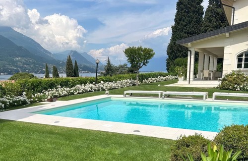 Villa Aria is a wonderful, exclusive villa with a luxurious, contemporary Italian style, modern comforts, and a stunning, romantic view. It's just steps from the beach, excellent restaurants, and 300 meters from the ferry terminal for visiting all the lakeside towns. Surrounded by a well-kept, flat garden adorned with centuries-old trees, it features a large private pool overlooking the lake, an indoor spa with a hydromassage pool and Turkish bath, and a well-equipped gym. This property, with its panoramic views, tranquility, and privacy, promises unforgettable moments. Starlink Wi-Fi, air conditioning, and on-site garage parking are also available.