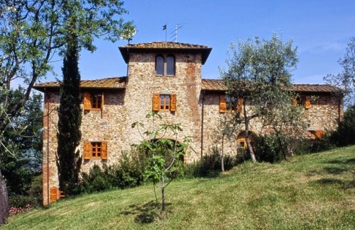 Ancient farmhouse surrounded by olive groves and terraced areas and situated inside the Castello di Bibbione estate in the Chianti area. The castle dates back to the early 11th century, whereas the stone-built houses of the hamlet date back to the early 13th century. The villa rental was purchased in 1511 by Niccolò Machiavelli and his descendants the marquis’ Rangoni Machiavelli personally tended to the recent restoration of the complex. From the house you can enjoy a stupendous view over the countryside. Bright and cosy, furnished with period pieces and ancient kilim rugs, the house is equipped with all the modern conveniences. The outdoor areas (4 ha.) and the swimming pool area (5x10)(01/05-30/09 open from 9.00am to 8.00pm) are well-kept to and equipped. The position of the house offers the possibility to organize easy excursions to Florence, Siena and Arezzo, thanks to the expressway which connects the cities and which can be reached in just a few minutes. In fact, the expressway passes through the valley below about 2 km away. On request and to be paid on the spot: cook, domestic help (extra hours), driver, baby sitter, breakfast service, guided tours, cooking lessons and health/wellness centre.