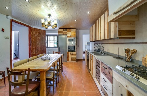 This charming rural villa near Palafolls is perfect for large groups, with space for up to 18 guests. Recently renovated and full of character, it features handmade wooden furniture, five bedrooms, a private saltwater pool, a football field, ping-pong area, and two outdoor dining zones with a stone barbecue. Set on a 2,500 m² fenced plot, it offers peace, privacy, and safety for families with children. Inside, enjoy a cozy living room with a fireplace, a fully equipped kitchen, a children’s playroom, central heating, fans, Wi-Fi, and private parking. The location is ideal for exploring both the Costa Brava and Barcelona's north coast. Popular beaches like Blanes, Tossa de Mar, and Malgrat de Mar are just a short drive away. Palafolls Castle, outlet shops, and Marineland water park are all nearby. Spring to autumn is the best time to enjoy the outdoor amenities, and the villa is easily accessible—just 45 minutes from Barcelona and 30 minutes from Girona. Guests have exclusive use of the house. Pets are welcome with a small fee, and quiet hours are required from 10 PM to 8 AM. A car is necessary due to the rural location. Check-in takes place in nearby Lloret de Mar, with late arrival options available. A tourist tax applies, and guests are expected to leave the house tidy. For a relaxed, nature-filled getaway near the coast, this villa offers everything needed for a memorable stay.