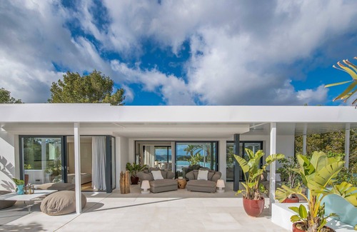 Villa Fabula is a dreamy villa with a large sea view of the Balearic Sea, Las Salinas salt flats and the Town of Ibiza. Cala Jondal and the beach of Salinas are really close.