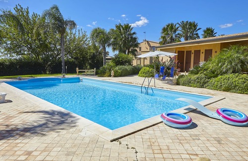 This villa is located in the territorial context of the "Archaeological Park of Selinunte", the largest in Europe, where you can admire the Greek temples dedicated to the Goddess Athena and the God Apollo. The villa is structured on two levels, you enter inside from the large and bright living room that is divided into different zones: dining, relaxing, reading corner. The furnishings take a vague inspiration from Oriental style according to the taste of the owner, even if some details recall the Sicilian culture and traditions. The large kitchen, appointed with attention to the smallest detail, overlooks the dining area and the large windows allow guests to enjoy the beautiful and lush vegetation that surrounds the villa and the wonderful colors of the flowers and plants that grow in the oasis. It should also be remembered that the villa is dipped in a property of 14,000 square meters of land, cultivated with olive groves, vineyards and fruit trees. The bedrooms are four, two double bedrooms and two twin bedrooms. There are two bathrooms, one with shower on the ground floor and one with tub on the first floor. In its large garden there is the swimming pool with annexed facilities, such as bathroom and shower. In the garden there is also a patio with kitchen, BBQ and a fine Sicilian majolica table to enjoy delicious outdoor dinner. About Belvilla When you stay in a Belvilla home, you can rest assured of a unique holiday home in ideal surroundings at an attractive price. The portfolio of accommodations consists of more than 40,000-holiday homes in 20 European countries. Interested in a weekend getaway, a summer or winter sports holiday or simply a short break? Do you prefer the coast, the countryside or the mountains? Whatever your preference, there is a Belvilla home to meet your needs, from a cosy gîte for two to a castle big enough for the entire family, from an apartment in the heart of Rome to a cabin in the middle of nowhere, from a simple tree house to a luxury dream villa and from close to home to the other side of Europe. A Belvilla home gives you the freedom to enjoy breakfast in your pyjamas or continue a good conversation into the morning hours without having to worry about the bar's closing time. Prepare gourmet meals with fresh local ingredients in your own kitchen and take advantage of having your own swimming pool to do as many cannonballs as you want! In other words, you can enjoy complete privacy in your home away from home.