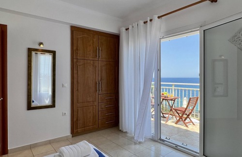 Villa Korfos has a sea view second to none in this south east corner of Kefalonia, set on the rising coast line, overlooking the sea, where on clear days you can see right across to the mainland and watch ferries, sailing boats and pleasure yachts plying their way to and fro.The Villa has been beautifully finished and designed to be ideal for families or groups of up to three couples with three double bedrooms all of which have a bathroom or shower room en-suite. There is a sofa bed in the larger bedroom for those who require a room with two beds - maybe for teenagers or children. Location In a quiet area just out of town, it’s 1.2 kms along the coast from the laid back resort of Skala (https://www.freelancevillas.com/skala-villas/) and a pleasant evening stroll can be followed by a returning short taxi ride back.If you’d rather not move even that far from the Villa (perfectly understandable), then within a 5 minute walk there is a lovely little undiscovered pebbly cove with beautiful clear water.There is also a choice between two excellent tavernas. Ten minutes walk further brings you to a patisserie (great croissants for breakfast) and a mini market. Outside Villa KorfosSea View Swimming Pool - 8m x 5m swimming pool. Depth 1m to 1.75m. Ladder entrySea View Sun terrace - sunbeds, rattan sofa set, and parasols Dining terrace - table, chairs and parasol - probably the best dining spot in the whole of Skala.Sea View Covered Dining terrace - pergola with table and chairsGarden - neat lawns and flowering shrubsBarbecue terrace - purpose built barbecue, table and chairs.2 Sea View Balconies - both with wonderful sea views and table and chairs. Inside Villa KorfosGround Floor - Open plan Living AreaKitchen area - run of fitted cupboards, dishwasher, electric oven and ceramic 4 ring hob, espresso maker (Nespresso original capsules), fridge freezer, sink.Sitting area - black leather sofa, two occasional chairs, plasma TV (limited channels/news only) and DVD player, sea view window, door to covered terrace and garden. Air Con unitDining area - table and chairs, sea view window.Double Bedroom - 1 double bed, fitted wardrobes, French doors to garden terrace with table and chairs, sea view window. Air Con Unit.Shower room - Walk in shower, hand basin, WC. and Washing Machine. First FloorDouble Bedroom with en suite bath room - 1 double bed, fitted wardrobes, French doors to sea view balcony with table and chairs. En suite bath with shower attachment, hand basin, WC. Air Con Unit.Double Bedroom with en suite bath room - 1 double bed, fitted wardrobes, sofa bed, French doors to sea view balcony with table and chairs. En suite bath with shower over, hand basin, WC. Air Con Unit. HousekeepingYour Villa will be prepared for you on arrival with fresh bath and hand towels and all beds made up. For stays of 7 nights or more - house towels will be changed every 3 - 4 days. For stays of 14 nights or more - bed linen will be changed every 7 days. Pool/beach towels - one per person for the duration of your stay.Parking - roadside parking area, with several steps down to the villa.2SegM