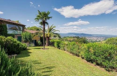 Villa Marraccini is located in the green hills south of Lucca, in Tuscany. Originally a 19th century chestnut spatula, the villa is spread over two floors and has been carefully restored to preserve its historic character. The rooms combine modern comfort and artistic style with terracotta floors, beamed ceilings, sandstone fireplaces and period furniture. Ideal for up to eight people, the house has four double bedrooms, a kitchen with dining area, and a living room. Designed for outdoor living, the villa is surrounded by a large landscaped garden with panoramic views of the hills up to Lucca and equipped with a pergola, built-in barbecue and pool with a view. The ancient walls of Lucca, the historic center, shops and restaurants are easily accessible by car. Possible day trips include Florence, Pisa and the beaches of Versilia.