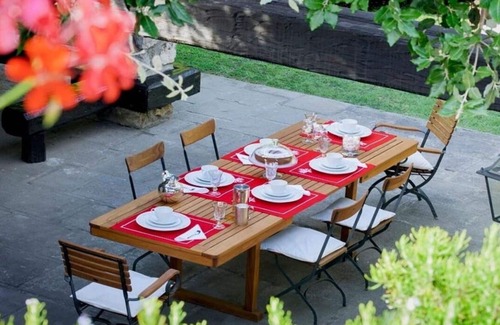 In the surrounding gardens, stretching luxuriously on three sides, time passes with rare slowness. A laid table, capable of accommodating a dozen guests, waits impatiently to satisfy the most refined palates. Shadows carve out spaces for relaxation and reflection, while a glass of fine wine or the pages of an author's book pamper the guest of this earthly paradise.