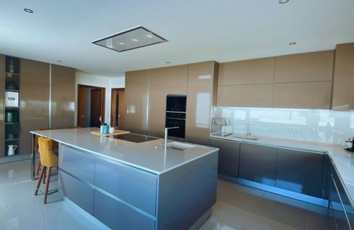 The villa has 4 bedrooms for up to 10 guests, each with a private bathroom and balconies overlooking the garden. You will also find a fully equipped kitchen, laundry room, barbecue area, and private parking.