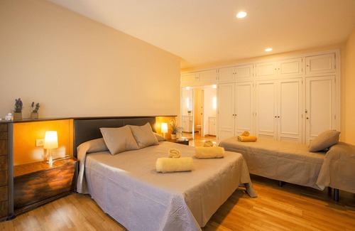The imposing entrance distributes the house in three spaces: the day area overlooking the pool, the sleeping area and the attic-studio area with TV to enjoy the views. In the day area we find a spacious room with incredible views to the outside, with a fireplace, and a marble table. The kitchen, fully equipped, gives way to a large covered porch with barbecue, which can be used both in winter and summer. The house has 6 bedrooms, 4 bathrooms, heating and free wifi. Next to the living room we find a room with two beds, a bathroom with shower and sauna, the billiard room and the ping-pong room.