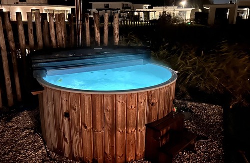Modern Villa with Hot Tub & Waterfront Bliss Unwind in this stylish waterfront villa nestled in the heart of Flevoland, perfect for a peaceful yet luxurious retreat. Set within the Harderwold resort, the villa features a private jetty and a bubbling outdoor hot tub—ideal for evening relaxation under the stars. With a spacious garden, terrace, and ample seating both indoors and out, this ground-floor stay is perfect for families or friends seeking serenity with style. Pets are welcome too, making it a delightful spot for furry companions to explore nature trails nearby. Explore Nature & Family Attractions Nearby Step out your door and into the lush Harderbos forest for scenic walks, or tee off just 300 meters away at the nearby golf course. Water lovers can head to Veluwemeer Lake or sunbathe at Flevostrand beach, both just minutes away. For unforgettable family fun, the famous Dolfinarium in Harderwijk and thrilling Walibi Holland theme park are close by. There are also dog-friendly hiking routes in Zeewolde and lakeside picnic areas where pets can splash freely. Delicious Dining & Local Flavors Indulge in local favorites at waterfront restaurants just 1 km away. Visit Harderwijk’s lively food scene (under 7 km), where you’ll find everything from fresh seafood to cozy bistros. Try 'Chez Brochard' for elegant French cuisine or enjoy lake views with casual bites at 'Beachclub NU'. Whether you're here to relax, explore, or dine well—this villa makes every moment count.