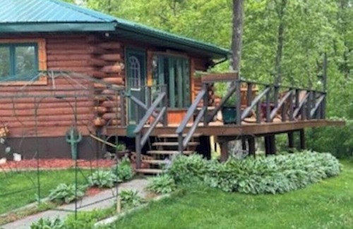 Beautiful hexagon log cabin in the heart of the driftless region. This 4000 ft. ridge top home has amazing views. 40 acres Tons of wildlife. House has huge wrap around deck on front also has a large screen porch with plenty of seating or enjoy fire pit great fishing and swimming 1/2 mile away. property is 5 miles from town farmers market every weekend. tons of restaurants and shopping. canoeing close by. many concerts downtown. 2 wine vineyards within 10 min away.