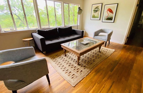 If you're looking for a comfy, cozy place that feels like home look no further! This 1950's 2,450 SF home is fully furnished, and has plenty of space for a group of friends or a large family to stay. Conveniently located within walking distance from the ACL Fest, Zilker Park, Austin Nature Center, Austin Rowing Dock, Redbud Isle (dog park), and Lake Austin. Downtown Austin is just minutes away and so is Austin's famous SOCO area. This home has a spacious kitchen (with oven), two living areas each with a fireplace, hardwood floors, limestone walls, and great nature view.