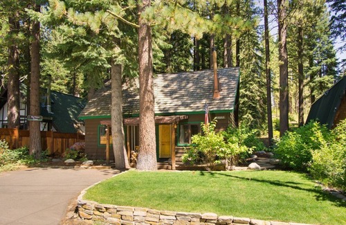 Nestled on a peaceful, secluded street in Tahoe Pines, Big Water Pines is a charming cabin retreat just 5 miles south of Tahoe City. This 2-bedroom, 1-bath getaway with an entertainment loft offers a cozy escape with a beautifully remodeled kitchen, a warm living area with a wood stove, and a hot tub for relaxation. The cabin provides parking for two cars, and high-speed internet allows you to stay connected.
