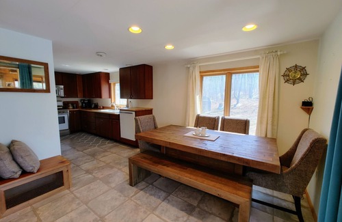 Attention nature seekers! north country trail is literally across the street, and trail 8 is only 1 minute down the road. So If you're into exploring in your 4x4, hiking, biking, or trail walking, then this may be as close to heaven as it gets in person for you! During your stay you be surrounded by gorgeous views and complete privacy! This is a full modern completely off grid, solar powered home with plenty of room to spread out! Enjoy amazing sunsert while sitting by the campfire or preparing dinner on the grill. master bedroom consist of the entire second floor with a half bath. There's a full bath on the main floor along with two full selfless sleepers that seem to work great for kids and then another queen sofa sleeper in the walk out basement which includes small kitchenette and then there is a full size futon in the back sun room looking out at the lake. large kitchen that is fully stocked with utensils and cooking Essentials. Gas stove and butcher block countertops. When you stay with us you also get free use of the paddle boat; kayaks can be rented $50 ea for entire stay. Please let us know in advance if this is going to be requested.