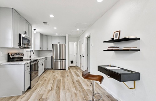 Welcome to your fully furnished corporate retreat on the water. This beautifully renovated 2-bedroom, 1-bath home is designed with comfort, convenience, and style in mind. Perfect for traveling professionals, contractors, and executives, it offers all the essentials for a seamless long-term stay. Located on navigable water with peaceful views and easy access to a public boat launch, the home is fully updated throughout with everything brand new, from furniture and finishes to appliances. The whole-home water filtration system ensures clean water at every tap. Both bedrooms feature full-size beds with built-in charging ports, and there is a third full pullout bed in the living room. High-speed Wi-Fi and smart TVs are available in every room, along with a dedicated workspace. The fully equipped kitchen has modern appliances and cookware, and a washer and dryer are located downstairs. Step outside to enjoy the 500 sq ft raised outdoor deck overlooking the water. All utilities (as well as lawn maintenance and pest control) are included for stress-free living.