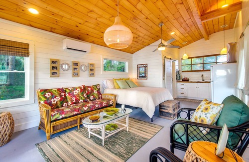 Indulge in a stunning waterfront getaway at 'Jackie's Jewel,' a 1-bath studio in Colonels Island. Embark on a culinary adventure with the grill, then kick back and enjoy picturesque views of the serene river. For explorers, a boat dock awaits on-site for aquatic escapades. From exploring history at the nearby Midway Museum to discovering the breathtaking beauty of the Coastal Georgia Botanical Gardens, this charming vacation rental is the ideal base for discovering the treasures of the coast.