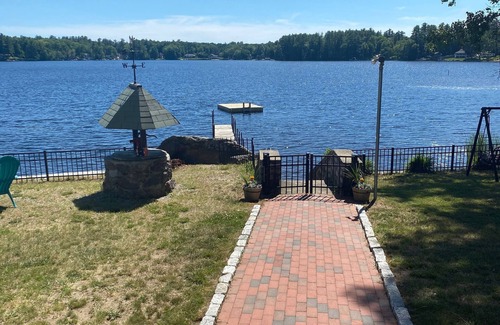 50 minutes from Boston, spacious 2 story summer home, quiet, private waterfront, sleeps 12 comfortably, perfect for large family. Swimming from a 50 foot pier or raft, (raft and pier available June 1 to September 1. BBQ, 2 picnic tables, fire pit, Plenty of room for badminton or horse shoes. Location has a lot to offer: Restaurants, one mile from Zorvino's Winery (tours,tasting and dinners), 2 Major golf courses, 7 to 15 min.(golf academy & putting green open all year) 20 min. from Canobie Lake Amusement park, Tax free shopping Mall, Large Bowling Alley and Miniature golf all within 15 minutes away. Pond is naturally spring fed with swimming and fishing right out the front door. The lake has plenty of fish to catch - including: bass, pickerel and catfish! Yard large enough to play horseshoes or have a Wiffle ball game! Large fire pit is great for roasting marshmallows to make Smores! Linens and bedding included! Kitchen offers everything: pots, pans, coffee maker, Keurig, microwave, mixer, blender, toaster, dinnerware and glassware, crock pot, set-it-and-forget-it too! Washer machine available and detergent and fabric softener provided. 4 clothes lines and clothes pins provided for drying. Main bedroom and living room have TV, DVD, cable and WiFi!
