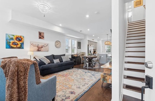 Welcome to the "Madison Retreat!" Walk in and enjoy a spacious layout with a private rooftop patio, perfect for relaxation or entertaining. Each bedroom has a queen bed, and the sofa folds into another queen bed. Small pets are welcome, with a crate provided for your convenience.