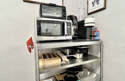 The house has a fire stick which allows you to access all major TV subscriptions you have. The Wi-Fi will be available the moment you walk into the house. Just put in the password. Towels are underneath the sink in the bathroom. There’s an Extra blanket in the closet on the top. If more than 2 guest are staying spare sheets and pillows will be provided. There are two robes available to use. If they are taken home you will be charged additional for them. There are two different hammocks that you are able to put up located inside of the closet.(the green and yellow one fits the best) There’s an ironing board and a iron in the closet as well. Some cleaning products will be available either located in the closet or underneath the kitchen sink. A fire extinguisher is located under the sink in the kitchen.
