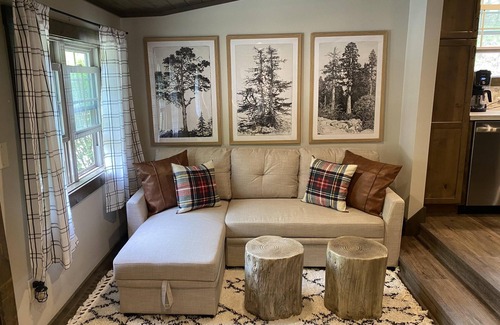 This is our vacation home—named for our dog, Brooks, and the brooks around the property—that we are sharing with family, friends, and guests when we aren’t there. We truly hope you love the cabin and area as much as we do! While the cabin keeps its 1920s rustic charm, you’ll also have all the modern conveniences and new furnishings throughout. Great for a getaway for two, with the first floor having the main living spaces, a queen bedroom, and a full bath. Perfect for families, couples, and groups, with the upstairs having an additional hangout space, a half bath, and many different sleeping options along with a reading nook/loft space.